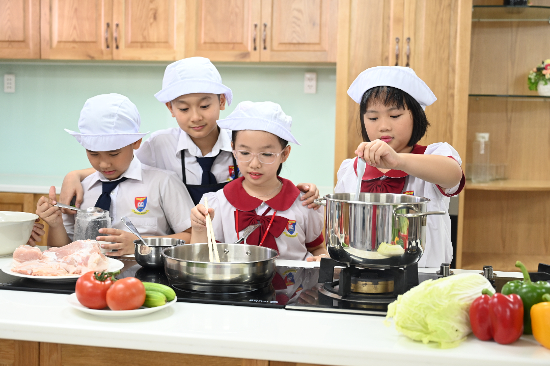 + Nhà trường còn có hồ bơi, sân cầu lông, sân bóng bàn, bóng đá để các em rèn luyện sức khỏe.